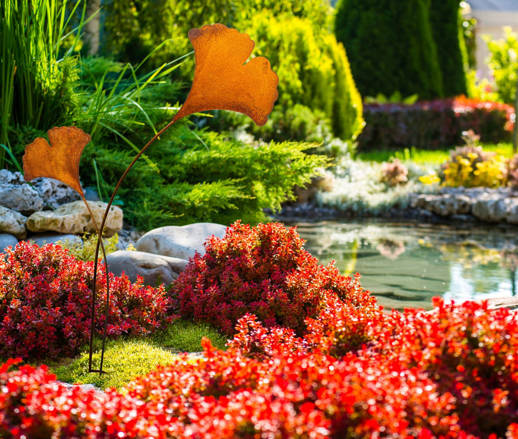 Ginkgo Blatt Rost Deko für Garten, Terrasse oder Balkon